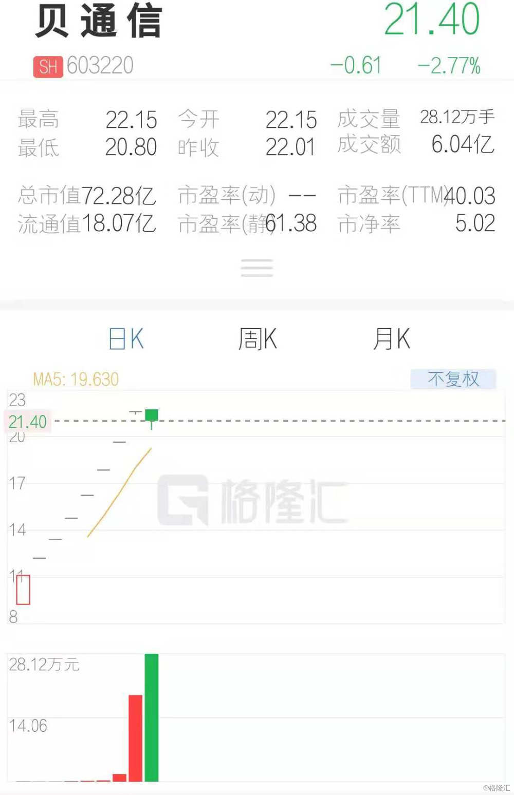 摘要:貝通信股票是時(shí)代的見證者,隨著科技的不斷進(jìn)步和通信行業(yè)的迅猛發(fā)展,貝通信股票成為了市場(chǎng)關(guān)注的焦點(diǎn)。其股票表現(xiàn)優(yōu)異,成為通信行業(yè)的佼佼者,見證了通信行業(yè)的變革和發(fā)展。貝通信股票將繼續(xù)發(fā)揮重要作用,為投資者帶來更多機(jī)遇。