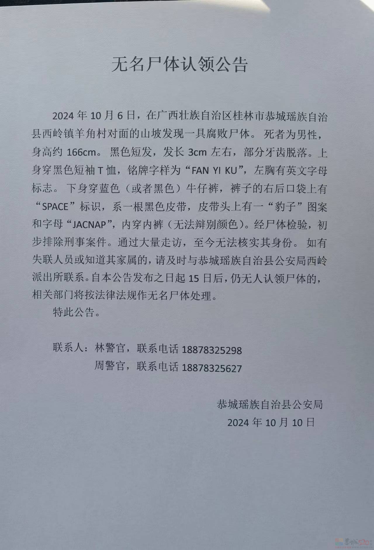 5、公告與通知:確認(rèn)身份后發(fā)布公告,通知家屬認(rèn)領(lǐng)尸體。